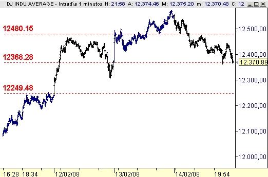 Continúa el dow con el recorte. Ha llegado ya a la primera zona clave que tenía a la baja, los 12.370. Han parado en ella el índice de forma precisa.
