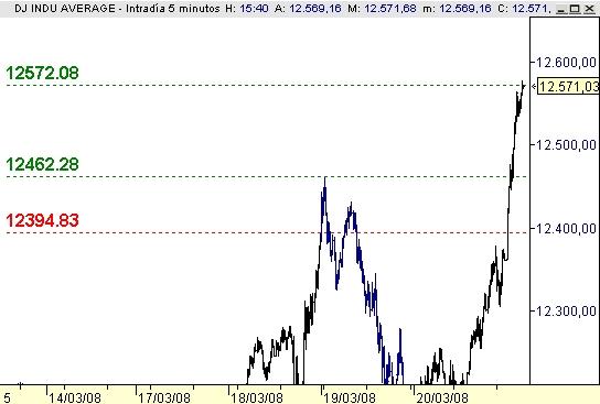 Situación del Dow 24-03-2008 15:40