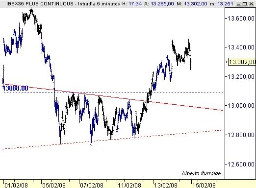 Y es que en el caso de que ahora nos encontremos con el futuro del Ibex recortando hasta la zona 13.090, que en su momento sirvió de parte superior del movimiento lateral, la tendencia natural de los operadores es la de buscar compras en el soporte para aprovechar rebotes intradíarios.